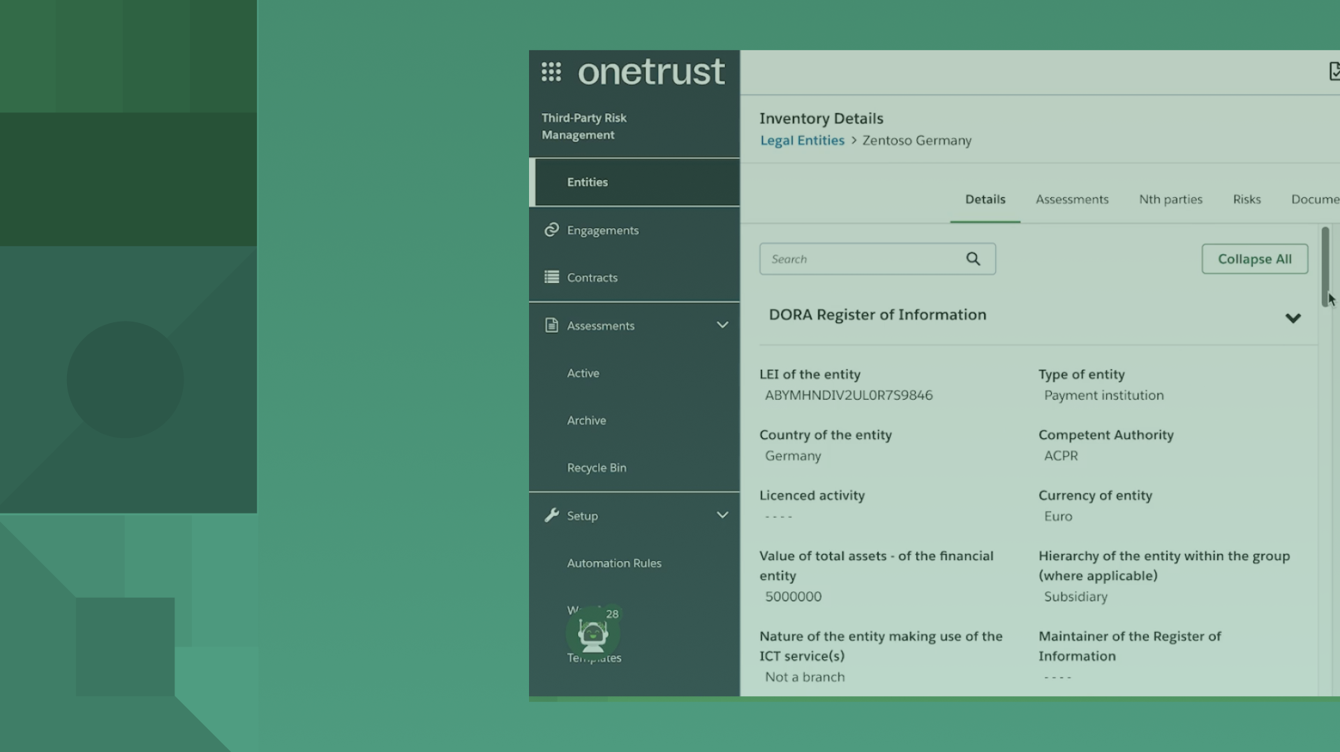 Discover how OneTrust helps financial institutions comply with the DORA regulation by streamlining ICT risk and third-party management at scale.